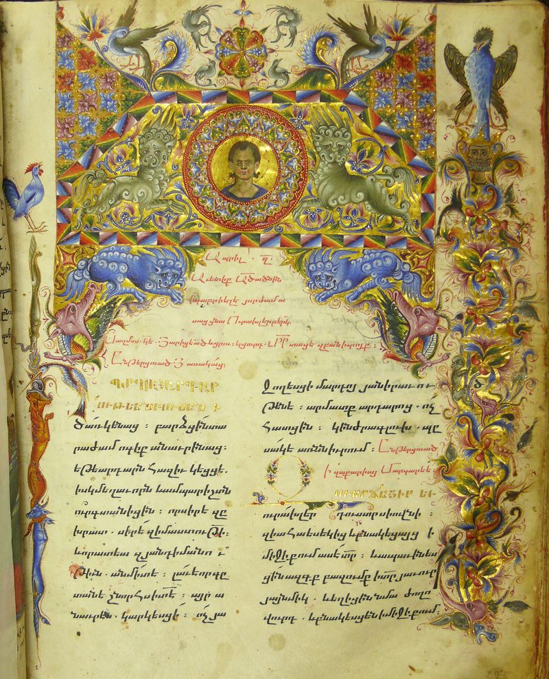 The manuscript book has a significant place in the Armenian culture. It is not only valuable for its rich contents (historical, theological, philosophic, literary and other subjects), but also as a piece of art with its material, calligraphy, miniature painting, neumography and at the same time as an exact document with its colophons speaking about the place and the date of its writing, the persons who participated in its creation, as well as numerous diverse events which took place at that time. From this viewpoint each manuscript is an absolutely original piece of culture.